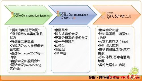 微软在1999年就推出了自己的即时通信平台Exchange 2000,而真正作为微软里程碑式的即时通信平台为OCS 2007(Office Communications Server 2007)。OCS 2007使用户真正的达到了随时随地沟通。而现如今微软发布的Lync正是从OCS 2007演变而来的,OSC发行的最后版本是OSC 2007 SP2。在来自权威的报告中,微软在统一通信方面所做出的成果排在第一名。