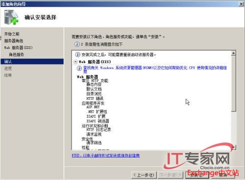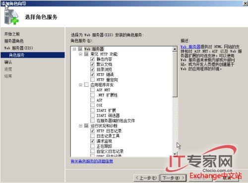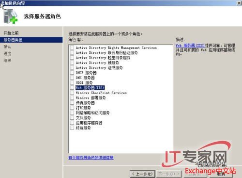 选择角色需要的相关服务之后单击“下一步”: