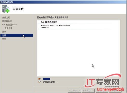 系统开始安装所选的角色服务,可能需要几十秒可几钟时间: