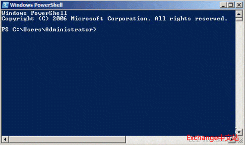 一旦你安装了PowerShell,您可以在开始菜单->所有程序中看到Windows PowerShell 1.0这一项,点击其中的Windows PowerShell选项。这时,你就可以看到一个蓝色的CLI窗口,如下图所示:
