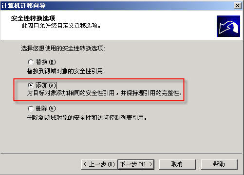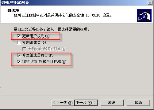 关闭SID Filter, 默认在Windows 2000 SP4以上及Windows2003启用了SID Filter, 在迁移过程中,为了让用户可以正常原有资源,我们需要迁移SID Histrory.