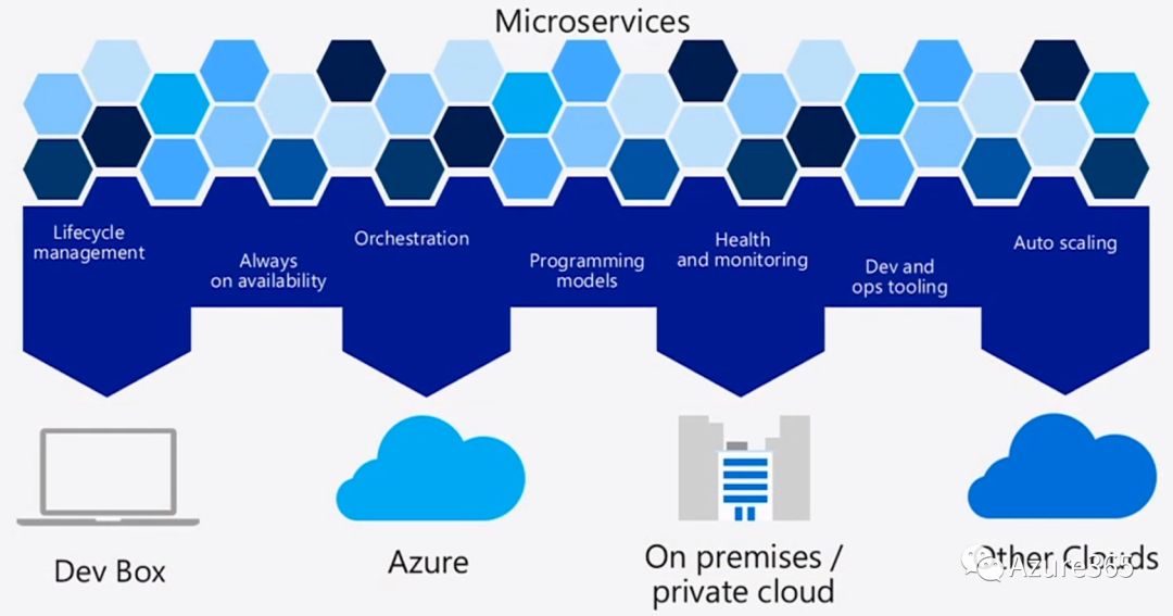 微软的Service Fabric架构为Azure、本地或混合云上的微服务提供了生命周期管理、高可用、容器编排、编程模型、健康监控、DevOps工具以及自动扩展等服务。目前微软自身运行在Service Fabric上的服务有:Azure SQL,文档数据库、Cortana、SfB、物联网Hub、事件Hub以及PowerBI。