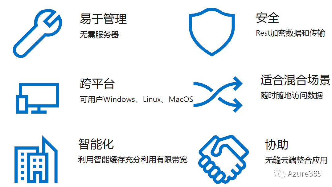 下面说说文件存储,Azure的文件存储可利用SMB 3.0 加密安全加载来自任何位置的存储。同时其支持Windows与Linux两大主流操作系统,增加了灵活性和旧版兼容性。
