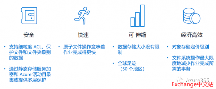 - 完全支持所有Blob功能(AAD集成、区域冗余和RA–Geo冗余存储);