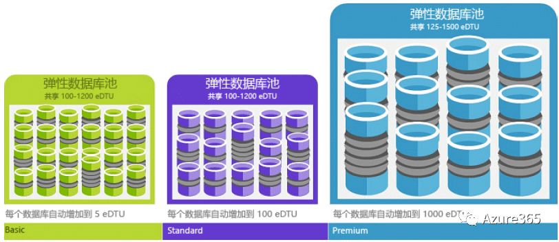 在Azure SQL Server,充分利用了弹性资源的优势,定义了弹性数据库事务单位eDTU。它表示可在Azure SQLServer中的一组数据库之间共享的资源集,称为弹性池。弹性池是一种简单的低成本高效益的解决方案,用于管理使用模式变化很大且不可预测的多个数据库的性能目标。