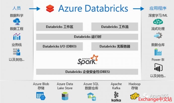 与Azure流和分析服务类似的,但只在国际版才提供的服务叫做Azure Databricks,由于国内版没有此项服务这里就不做过多展开,以下是它的数据流向图。