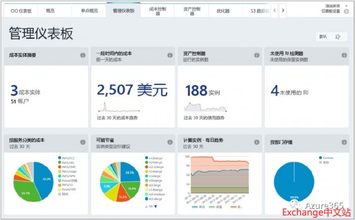 当公司使用了不止一家云厂商的服务时,Cloudyn(微软子公司)许可的Azure成本管理可以跟踪Azure资源和其他云提供商(包括AWS和谷歌)的云使用量和开支。便于理解的仪表盘报告也有助于成本分配和Showback/Chargeback。成本管理通过确定可供事后管理和调整未充分利用的资源,帮助优化云支出。