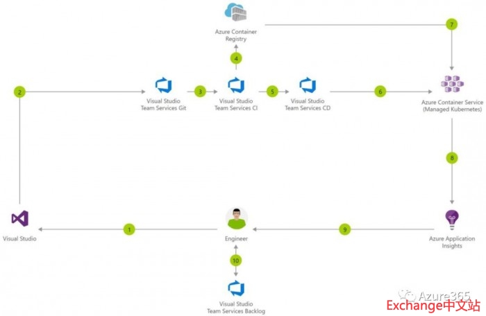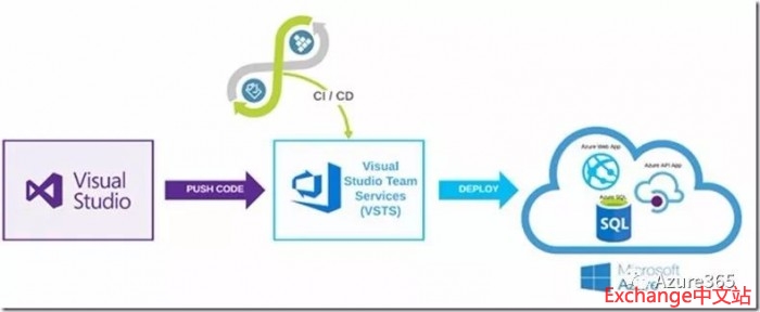Azure上的敏捷开发上使用的是Visual Studio Team Service(VSTS),相当于是一个VS的web版本。开发人员可以很方便的将本地VS的代码推送到Azure上,VSTS可以集成各种CI/CD工具,当然也可以使用原生的VSTS管道,经过几轮迭代后,满足上线要求的部署到Azure应用中。