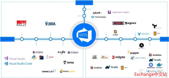 VSTS的生态圈几乎涵盖了当下所有主流的CI/CD组件,从计划与跟踪到测试与发布,只要开放了API,完全不用担心集成性的问题。