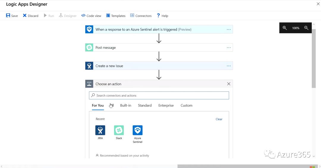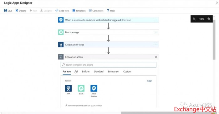 到这里,可能有用户会担心系统或应用日志在原服务器上已经有一份了,使用Azure Sentinel不会引起数据重复存储和不必要的网络负担么?其实Sentinel只是通过连接器远程查看源日志,然后将问题展示在Sentinel的仪表盘上。Sentinel与前面介绍的安全中心不同的是,安全中心着重于基础架构层面,根据各系统安全防护深度对基础架构进行整体评估;而Sentinel可以评估更多系统层以上的接口,并对日志进行实时预警,甚至当满足级别的警报触发后,后续可自动关联自定义的响应机制。