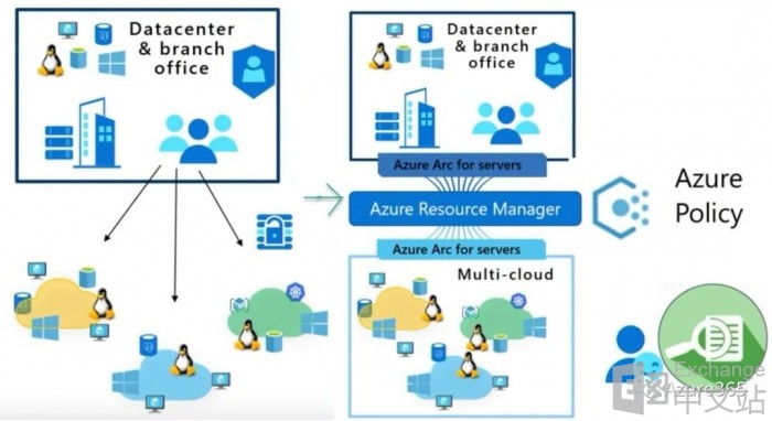 这里Azure Arc可以将一些基础的Azure服务和管理单元无缝延伸到其他任意环境和架构中。包括: