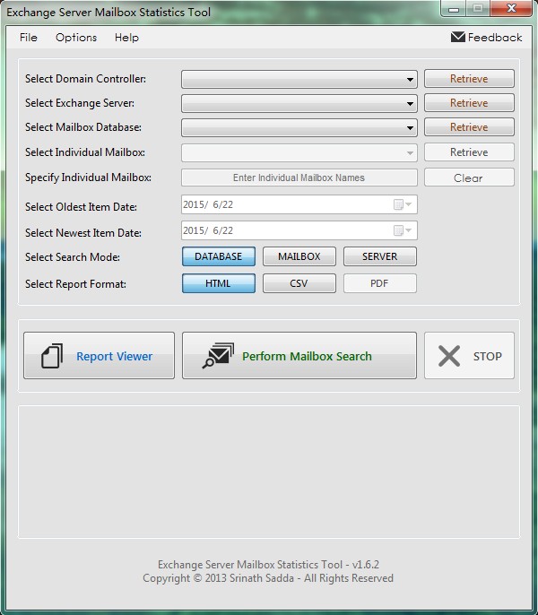 这是一个可获取指定数据库中的所有邮箱统计的应用程序。支持 Exchange Server 2010 和 Exchange Server 2013。工具可以检索邮箱统计的内容包括文件夹数,总项目,相关的项目,删除项目,总项目规模,已删除的邮件大小,新、旧项目的日期,邮箱配额等细节。它还包括一个额外的选项为“档案统计计划”可以让你搜索邮箱和提供具体的日期统计报告。