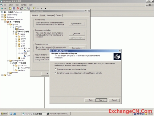 如果要实现两个服务器间互相发送接受邮件都使用加密的连接,下面的步骤需要在两个组织的桥头服务器上面各做一遍。