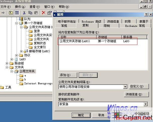 在“传播文件夹设置”框中,单击以选中“副本”复选框,然后单击“确定”。完成此步骤后,目标服务器(LAB3)上将具有此顶级文件夹的所有子文件夹的副本。