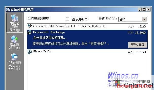 打开控制面版,通过添加删除程序,删除LAB2的Exchange.