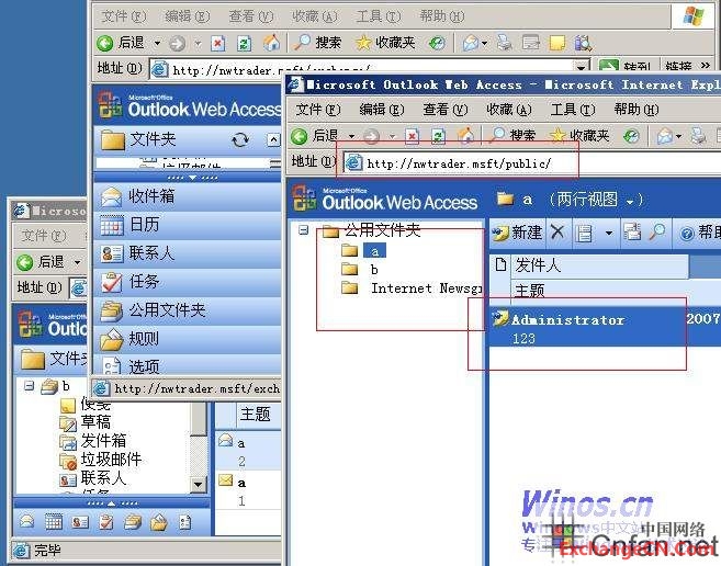 公用文件夹下所有文件夹重复操作一次,刚才是对a实行转移.我这环境,还有b文件夹.以及Internet Newsgroups都执行了.检查结果显示同步.