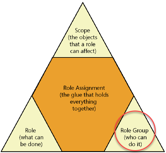 微软官方给出的Exchange 2013的RBAC架构模型如下: