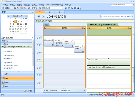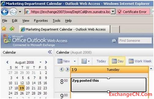 组中的用户现在有好个日历完全权限了。所以在OWA中,登陆进去后,我们可以打开 DeptCal 邮件地址的日历。这样,属于这个组的用户都能够共享这个部门的日历了。