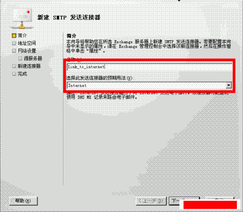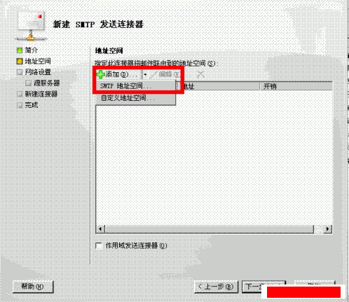 “Exchange控制台”——“组织配置”——“集线器传输”——“新建发送连接器”——“发送到internet”——“发信地址*”