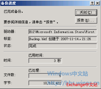总结,Exchange 2007的邮箱存储组的备份和还原步骤与Exchange 2003类似。此外,备份邮箱存储组并不等于备份了邮箱服务器角色,同时在备份和还原中也可能会遇到像文中所提到时的数据库以及文件等问题,需要注意使用查看日志的方法来帮助解决问题。
