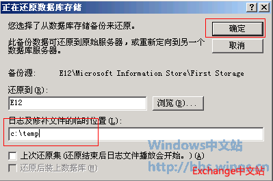 9、选择日志及修补文件的临时位置,并点击“确定”按钮。