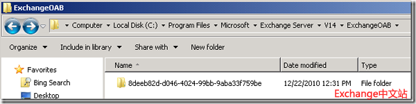 Exchange邮箱服务器创建好脱机通讯录之后,会把脱机通讯录的信息放到Exchange安装路径的ExchangeOAB子目录下,每一个脱机通讯录会在该目录下再创建出一个以GUID值命名的子文件夹,数据放在该子文件夹中。ExchangeOAB是一个共享文件夹,所有Exchange服务器对它都有读取权限。
