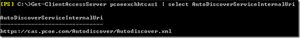 Get-ClientAccessServer pcoeexchhtcas1 | select AutoDiscoverServiceInternalUri