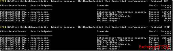 命令会检查Outlook连接时使用到的各个Exchange服务,命令输出结果很长,就不做截图了。
