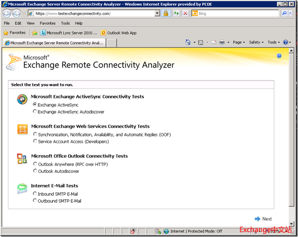 Microsoft提供了Exchange远程连接分析器,这个分析器可以对与Exchange相关的所有外部访问进行测试,可以说,这是个“一网打尽”的部署检查工具。