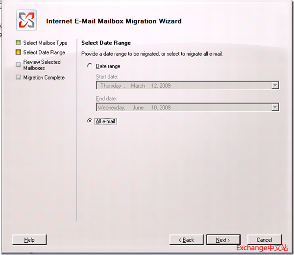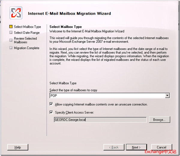 下面是大致的迁移步骤,前提是所有用户在Exchange所在的活动目录中已经存在帐号。
