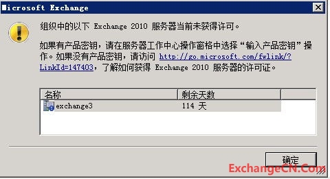 Exchange 2010 序列号的输入与之前版本的Exchange服务器激活方法较为特殊,你可能在安装完成Exchange 2010后在进入Exchange管理控制台(EMC)后,会弹出Exchange 2010服务器未获得许可的窗口。 但是,在无论是在进入后的控制台首页,还是其它版权、帮助位置处都找不到输入序列号的地方。而在不同的Exchange 2010服务器角色当中输入的位置也不同。