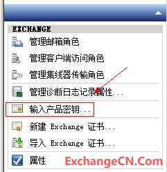 1、 在非“边缘传输服务器”角色的Exchange 2010中,打开Exchange 2010 控制台,点击左边的“服务器配置”,然后在右边的任务窗口中会看到“输入产品密钥” :