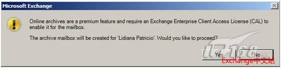 如果要在既有的邮箱创建归档邮箱的话,可以在选项中选择添加归档邮箱。会出现一个确认画面。点击YES即可创建。