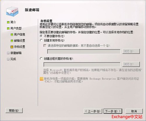 在为用户创建邮箱时,可以直接自定义想要存档的数据库。