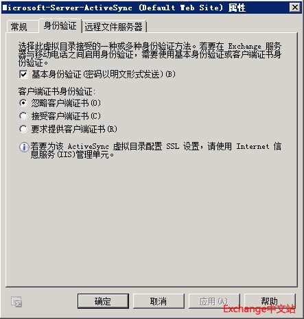 打开Exchange管理控制台,展开“服务器管理” – “客户端配置” – 在下方的“Exchange ActiveSync”处双击 “Microsoft-Server-ActiveSync”,打开其属性对话框即可对其进行相关的设置。