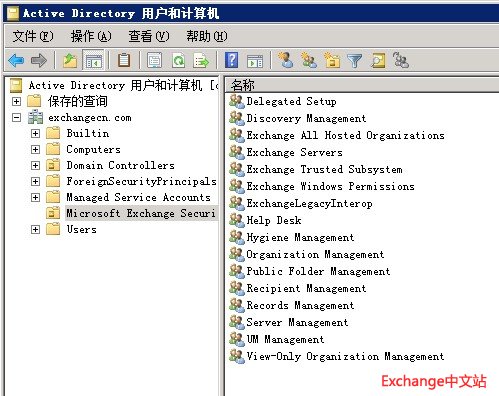 将用户添加后就可以使用此用户对Exchange 2010进行管理了。同时你也可以使用Microsoft Exchange Security Groups组中的其它选项对Exchange的其它组进行相关的设置。