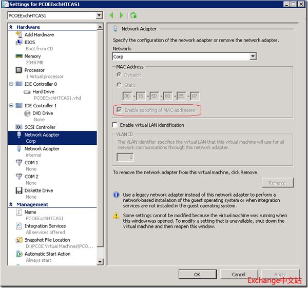 首先需要注意的是,如果Exchange Server 2010是安装在Hyper-V上的虚拟机,那么需要根据Hyper-V的版本进行不同的配置。
