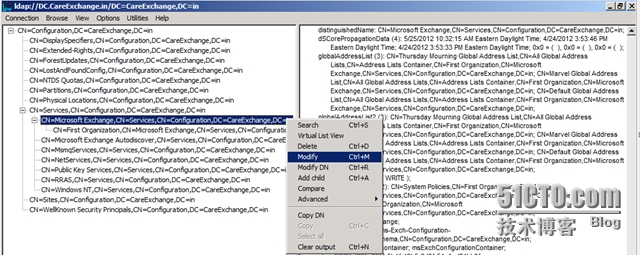 Click Connection->Bind-> 找到Microsoft Exchange Container –> 右击–> Modify