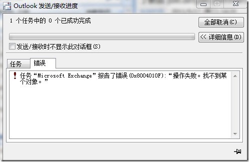 1、 outlook 2007/2010客户端下载通讯薄时报告错误,如图