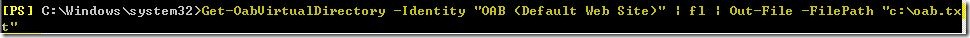 可以将OAB的配置信息输出到文件,在文件中查看内部和外部URL是否正确