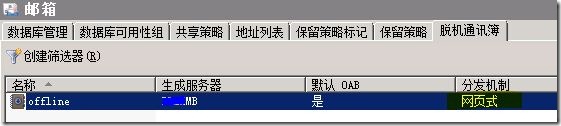打开EMC——组织配置——邮箱——脱机通讯薄——右击设置的脱机通讯薄——属性
