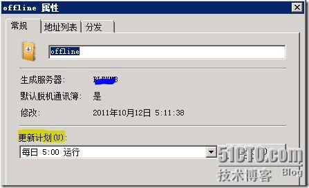 一般我们在新建立账户之后,客户端OAB可能不会马上更新,就找不到新建的账户对象,这时就可以重新生成通讯薄,立刻更新,脱机通讯薄默认会在凌晨五点自动更新,我们也可以手动自定义这个设置