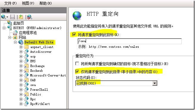 需求:公司要求使用Http://mail.ever.com的方式来统一访问邮箱,所以需要进行相关的设置,将访问需求重定向到https://extest.ever.com/owa
