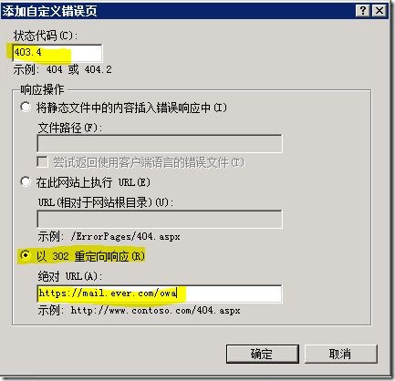 注意下图中的状态代码为403.4,如果你填成其他的会导致重定向不成功