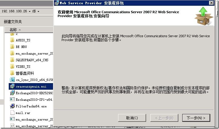 3.双击“CWAOWASSP.msi”以安装 Microsoft Office Lync Server 2010 R2 Web 服务提供程序。