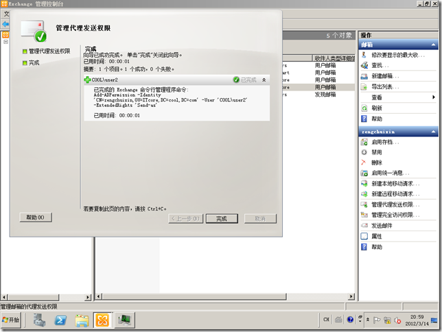 注意:代理发送权限设置之后,可能不会立刻生效,如果想立刻生效,可能需要重启exchange相关服务。