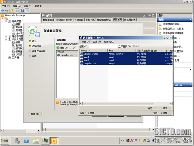 保留策略是在exchange 2010 邮件服务器上面统一配置的,使用outlook 2010或者outlook web app的用户可以灵活应用,选择合适的策略。