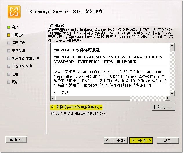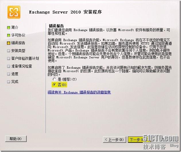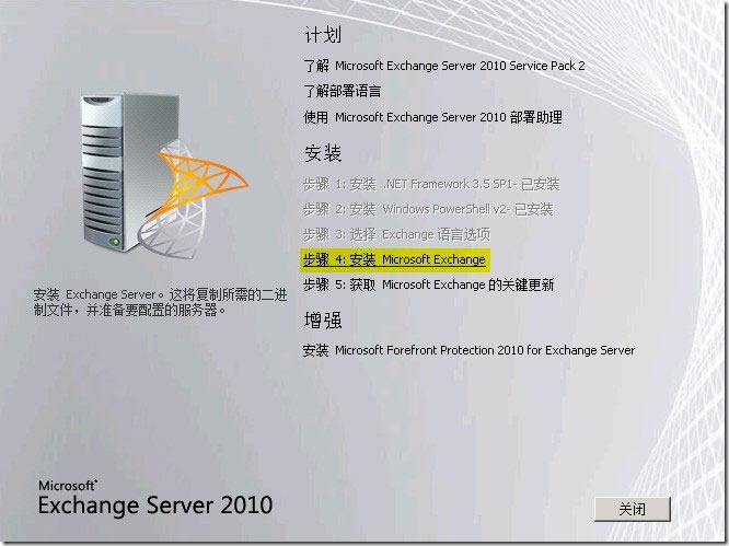 在SP2目录中运行Setup.exe,在Exchange的安装主界面中首先完成步骤3,选择Exchange语言从DVD中安装,然后单击步骤4,打开Exchange安装向导