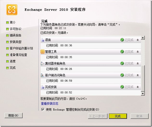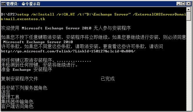 所有准备工作完成后,下面就开始正式部署第一台Exchange CAS/HUB服务器了