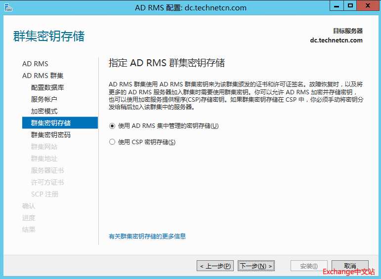创建 AD RMS集群密钥密码。